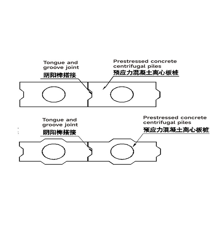 桩身短边设有凹凸榫,既可沉桩导向定位,又可形成密封槽,防漏土效果好。